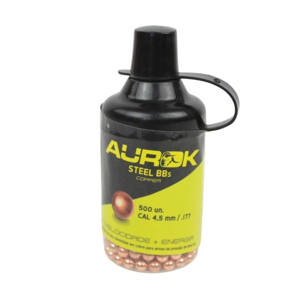 500 Bbs Aço Steel = BBs 4,5mm - Aurok - Cobreada