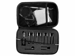 Para facilitar a vida do atirador, durante a manutenção da sua arma, esse kit, também acompanha um fio com ponta rosqueável que pode ser acoplada a vareta, uma empunhadura para a vareta e um pacote de papéis específicos para limpeza das escovas e varetas.