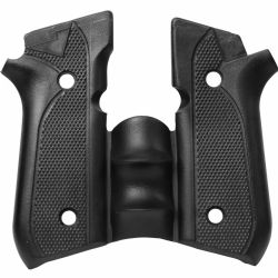 Cabo / Empunhadura Borracha Pistola Taurus - PT92/99/100/101/57s Sem Desarmador Cabo / Empunhadura Borracha Pistola Taurus - PT92/99/100/101/57s Sem Desarmador APLICAÇÃO: Empunhadura de borracha com pronunciado entalhe para os dedos. Pode ser utilizada em pistolas com retem do carregador na parte inferior do punho ou na região do guardamato. (ver detalhe em imagem ampliada) MODELO: Pistola Taurus modelo PT92, e outros sem desarmador. PT92-99AF-100-101AF Serve também para PT57-S e 15 tiros FABRICANTE: Combat COR: Preta