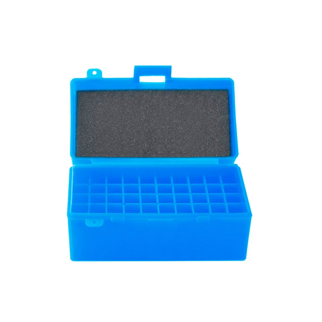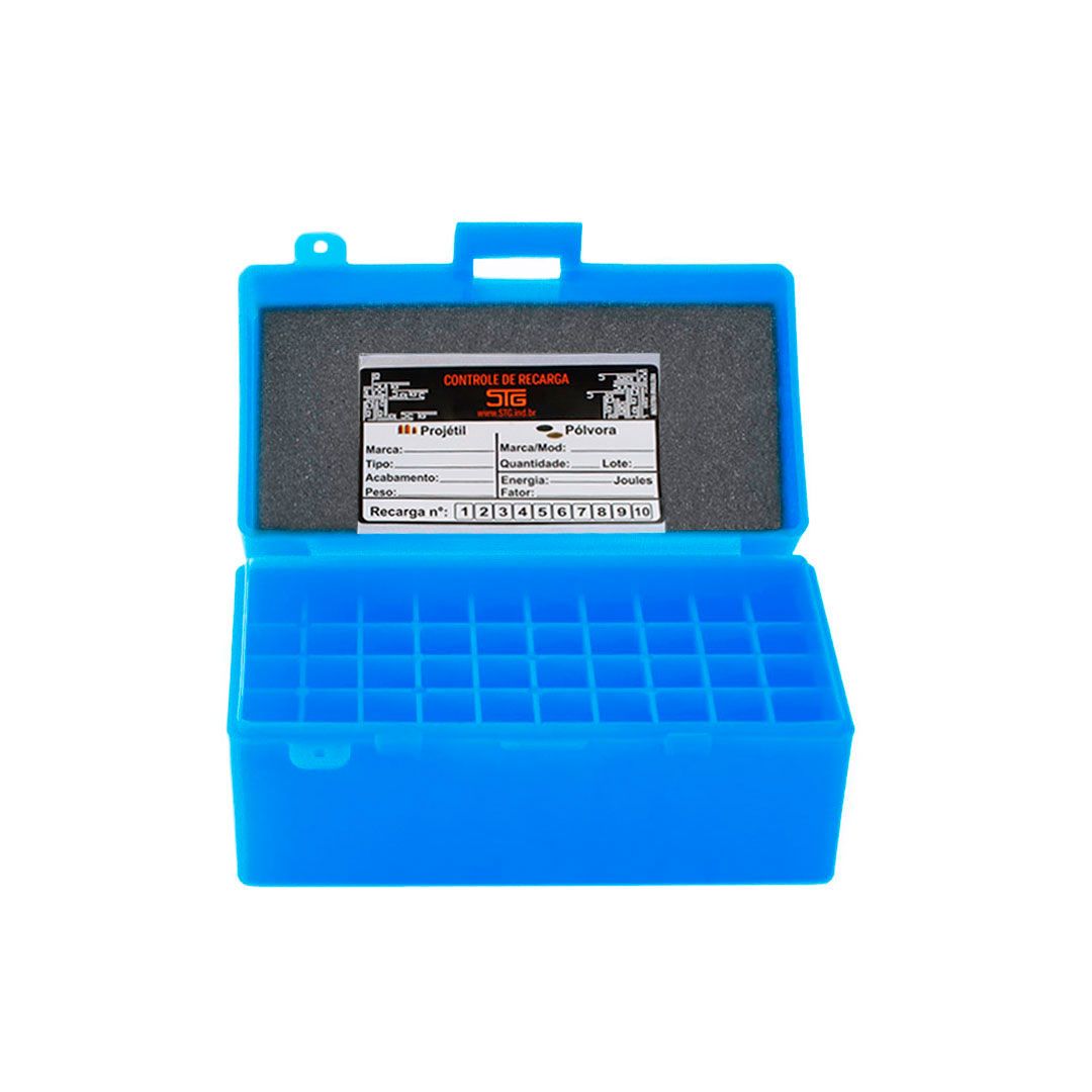 APLICAÇÃO: Caixa plástica resistente, com capacidade para 50 munições para calibre 308WIN / 7.62