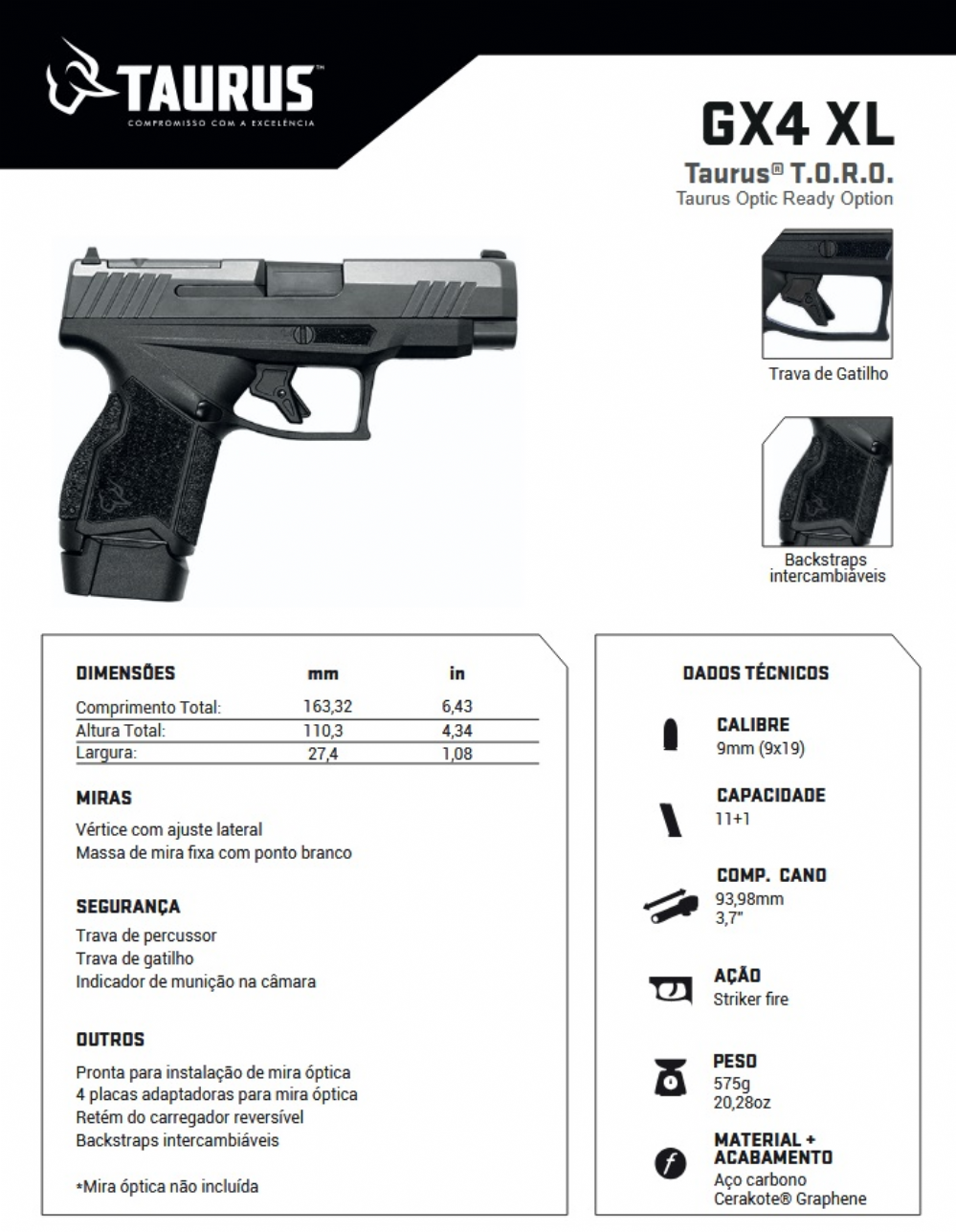 Mais informações sobre este produto: Pistola Taurus GX4 XL Graphene 9mm