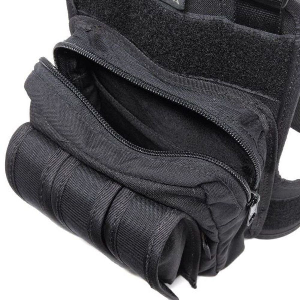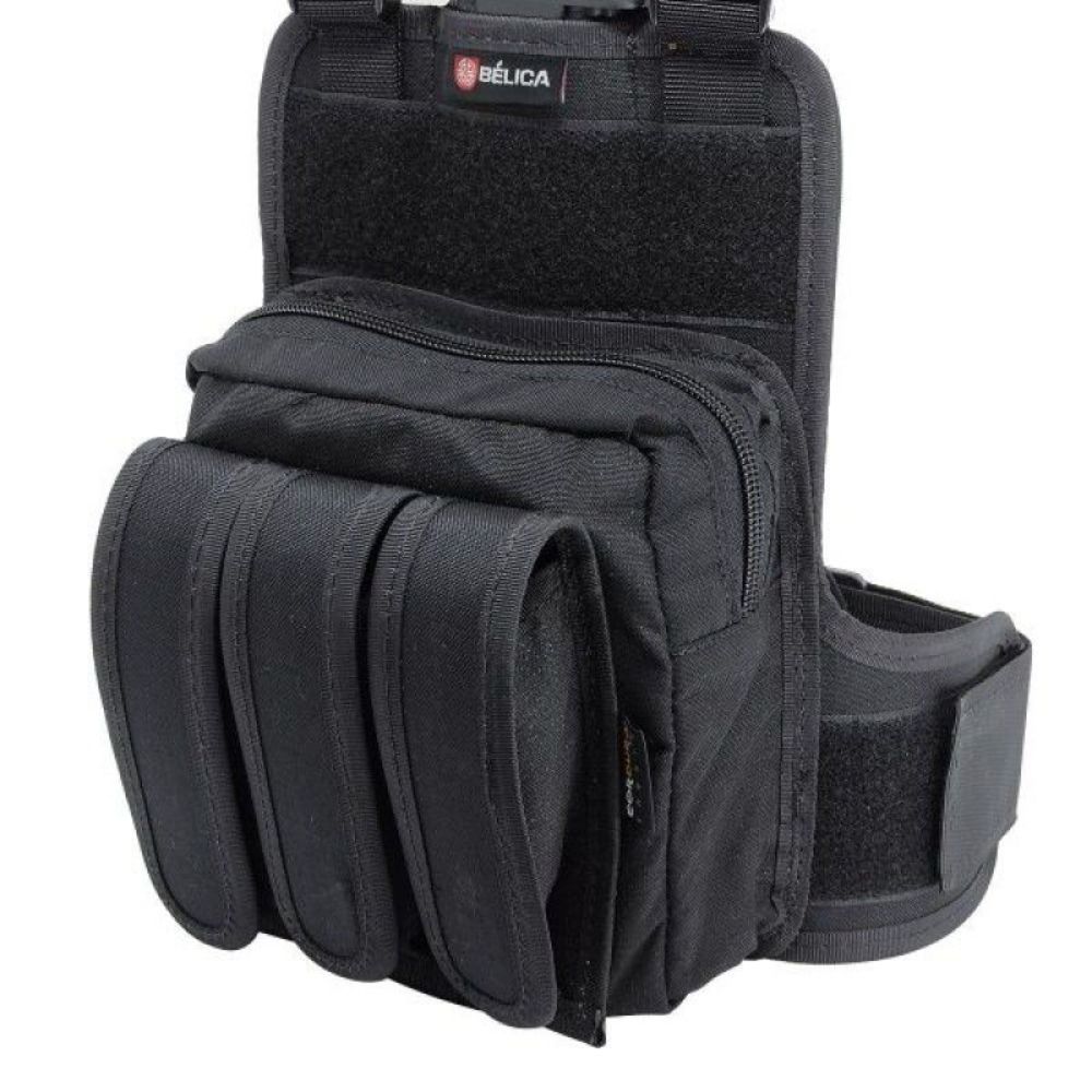 A Pochete com porta permite o transporte de equipamentos, a fim de deixá-los sempre a mão, além de contar com o rápido saque da faca. Utilizado para armazenar e distribuir os equipamentos facilitando qualquer ação.