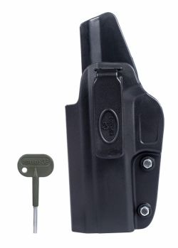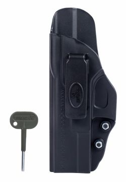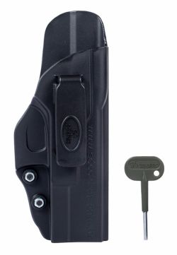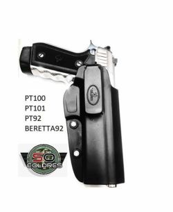 O sistema de travamento da arma consiste em pressão nas paredes do coldre e um sistema interno de travamento do guarda-mato, permitindo um saque rápido sem danificar o armamento. Sua flexibilidade possibilita melhor adaptação da arma no coldre.