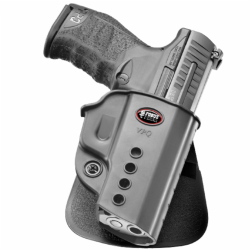 Fórmula de polímero moldado por injeção Retenção passiva com parafuso de ajuste: O sistema de retenção passiva do Fobus atua como uma mola na área do guarda-mato, mantendo a arma de fogo firmemente no lugar.
