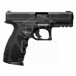 Pistola Taurus TH9 - Tenox 9mm Pistola Taurus TH9 - Tenox 9mm PISTOLA TAURUS TH9, TECLAS 100% AMBIDESTRAS. Possui capacidade de 17 tiros, calibre 9mm, cano de 108mm e mecanismo de disparo em ação simples e dupla com cão externo e armação de polímero. Com alta capacidade de tiros, é adequada para a utilização em diversos segmentos, como: esportivo, militar, policial e defesa pessoal. É equipada com trilho picatinny para acoplamento de acessórios.